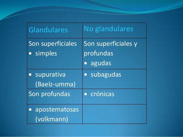 - 13. Glandulares No glandulares Son superficiales simples Son superficiales y profundas agudas supurativa (Baelz-umma) subagudas Son profundas crónicas apostematosas (volkmann)