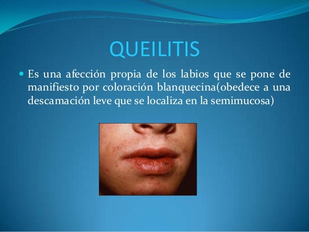 - 2. QUEILITIS ? Es una afección propia de los labios que se pone de manifiesto por coloración blanquecina(obedece a una descamación leve que se localiza en la semimucosa)